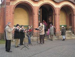 Es ist leider nicht mehr genau festzustellen, wann der Posaunenchor unserer Kirchengemeinde gegründet wurde. Befragungen ehemaliger Chormiglieder ergaben, dass es bereits 1954 auf jeden Fall einen Posaunenchr gab. So wurde am Sonntag, dem 20.Juni 2004, in einem Festgottesdienst anlässlich eines Kreisbläsertreffens unter der Leitung des Landesposaunenwarts Siegfried Zühlke das 50jährige Bestehen unseres Posaunenchores gefeiert.